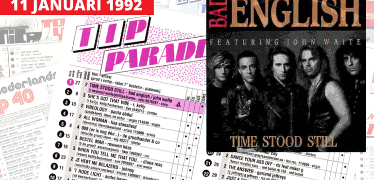 De tiplijst, 2de week van 1992 met een bijzondere keuze voor de alarmschijf. Bad English scoorde in Amerika een nummer 1 hit met When I See You Smile. Doet bij ons niets, maar Time Stood Still is andere koek. Band brengt maar 2 albums uit en is al uit elkaar als deze single bij ons een 7de plek bereikt. En daarmee hun greatest hit. Staan meer toekomstige Top 40 hits in deze lijst, maar wij halen een aantal singles boven water van grote artiestennamen die ver weggezakt zijn in ons collectieve hitgeheugen, Zullen vast wel een plekje hebben gekregen op hun eigen greatest hits album.